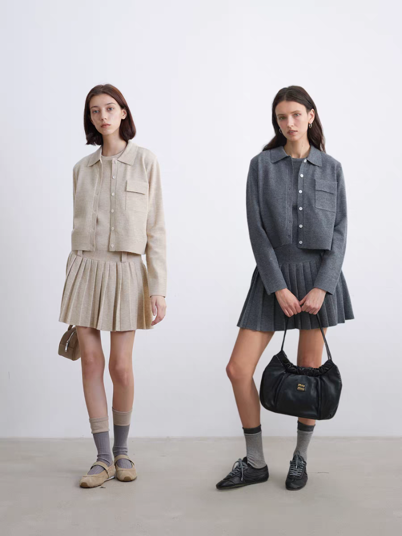Our production capabilities for cardigan sets include a variety of sophisticated designs: