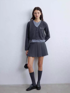 Product NamePreppy Urban Fake Two-Piece Knit Set | Layered V-Neck Sweater & Pleated Mini Skirt | OEM/ODM Knitwear Manufacturing