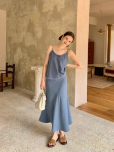 - Fluid Mermaid Cut: The midi skirt features a precise mermaid silhouette that fits snugly through the hips and flares elegantly at the hem, showcasing our mastery in pattern engineering and fabric drape.